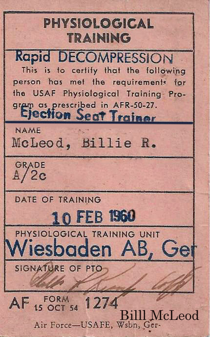 322nd Air Division moved most of our cargo around Europe including parts for nuclear weapons. All nuclear parts had to escorted, that is they had to be handed from one person with a Top Secret with Nuclear Endorsement to another. All our flight engineers had this clearance. Our F100 complement in Europe included two planes with a dual seat arrangement. It was thought that at some point we might have to fly that seat with a nuclear part. This required us being sent to Weisbaden to be trained for the ejection seat and high altitude decompression. I never was required to do this and I don't know anyone who did. The closest I ever came was one time when we were at Torrejon, Spain and they were going to take me off my plane and send me to England with a part. At the last minute someone realized that the pilot of the F100 was fully qualified to escort the part.